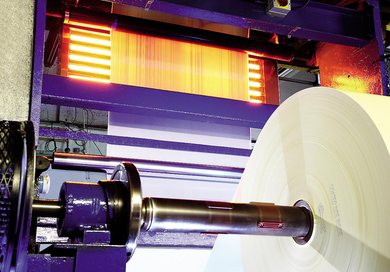The British company Smith & McLaurin, a global manufacturer of self-adhesive label, ticket and tag materials, has succeeded in more than doubling the line speed on one of its paper coating lines by using a carbon infrared heating system from Heraeus Noblelight. In addition, it also improved quality by eliminating uneven adhesive substrate patterns caused when drying coloured adhesives directly after application.
