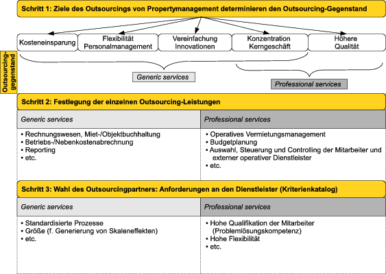 Unfortunately, property management services often do not meet the aforementioned criteria: Rather than being mere commodities, these services have to be individually composed and executed given that context and goals of properties are specific and thus heterogenic. Against this backdrop, established outsourcing-procedures may not be translated one-to-one to outsourcing property management.