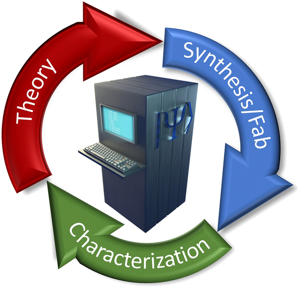 The fabrication and operation of these NISQ devices represent a substantial challenge, for many reasons. From a materials science perspective, the most important challenges center around how to fabricate many-qubit systems that simultaneously preserve the excellent properties demonstrated for single qubits (e.g., long quantum coherence times), but also enable high-fidelity interactions (quantum entanglement) between the qubits, required to execute complex quantum algorithms. Thus, although the materials science considerations relating to single- or few-qubit devices remain outstanding questions of importance, the creation of NISQ devices has uncovered a set of new problems to address. These problems are multidisciplinary and complex, rooted not only in the fundamental quantum interactions, but also intimately connected to the materials and fabrication processes used to realize devices and systems. Thus, a dedicated, systematic, and comprehensive contribution from materials scientists—spanning synthesis, fabrication, characterization, theory, and modeling, as highlighted in Figure 2—will play an essential role in driving future advancements in both single-/few-qubit systems and the path to scale-up.