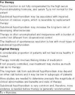 Laurberg P, Faber J. Subclinical thyroid disease: to treat or not to treat [online]. Hot Thyroidology 2001; 4. Available from URL: http://www.hotthyroidology.com [Accessed 2004 Nov 22]