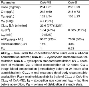Kovarik JM, Mueller EA, van Bree JB, et al. Cyclosporine pharmacokinetics and variability from a microemulsion formulation — a multicenter investigation in kidney transplant patients. Transplantation 1994; 58: 658–63