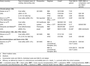 Dalziel K, Round A, Garside R, et al. Cost effectiveness of imatinib compared with interferon-α or hydroxycarbamide for first-line treatment of chronic myeloid leukaemia. Pharmacoeconomics 2005; 23 (5): 515–26