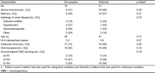 Design and Setting: This was a randomised, nonblind trial in patients enrolled between June and December 1994 at a single US centre. Patients and Participants: 36 adult renal transplant recipients who themselves, or their donors, were CMV-seropositive were randomised into 15 patients in the pre-emptive treatment group and 21 patients in the deferred treatment group.