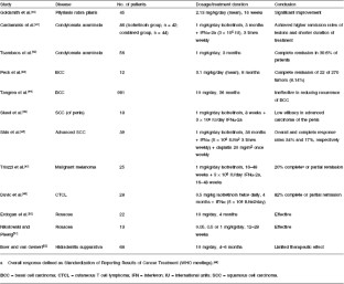 Toma S, Palumbo R, Vincenti M, et al. Efficiency of recombinant alpha-interferon 2a and 13-cis retinoic acid in the treatment of squamous cell carcinoma. Ann Oncol. 1994; 5: 463–5