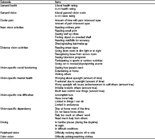 Mangione CM, Lee PP, Gutierrez PR, et al. Development of the 25-item National Eye Institute Visual Function Questionnaire (VFQ-25). Arch Ophthal 2001; 119: 1050–8