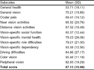 Toprak AB, Eser E, Guler C, et al. Cross-validation of the Turkish version of the 25-item National Eye Institute Visual Functioning Questionnaire (NEI-VFQ 25). Ophthalmic Epidemiol 2005; 12: 259–69