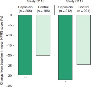 Webster LR, Malan TP, Tuchman MM, et al. A multicenter, randomized, double-blind, controlled dose finding study of NGX-4010, a high-concentration capsaicin patch, for the treatment of postherpetic neuralgia. J Pain. Epub 2010 Jul22