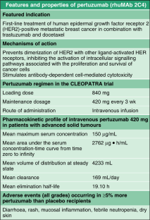 Agus DB, Gordon MS, Taylor C, et al. Phase I clinical study of pertuzumab, a novel HER dimerization inhibitor, in patients with advanced cancer. J Clin Oncol 2005 Apr 10; 23(11): 2534–43