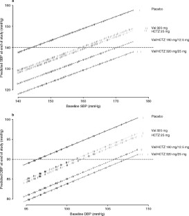 Lacourcière Y, Poirier L, Hebert D, et al. Antihypertensive efficacy and tolerability of two fixed-dose combinations of valsartan and hydrochlorothiazide compared with valsartan monotherapy in patients with stage 2 or 3 systolic hypertension: an 8-week, randomized, double-blind, parallel-group trial. Clin Ther 2005; 27(7): 1013–21