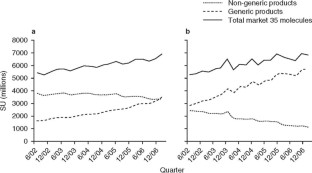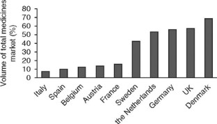 Methods: Data on medicine volumes and values for 35 active substances were purchased from IMS Health. Ex-manufacturer prices were used, and the analysis was limited to medicines in immediate-release, oral, solid dosage forms. Countries included were Austria, Belgium, Denmark, Germany, France, Italy, the Netherlands, Spain, Sweden and the UK, which constitute a mix of countries with low and high generic medicines market shares. Data were available from June 2002 until March 2007.