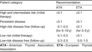 Pacini F, Schlumberger M, Dralle H, et al., on behalf of European Thyroid Cancer Taskforce. European consensus for the management of patients with differentiated thyroid carcinoma of the follicular epithelium. Eur J Endocrinol 2006 Jun; 154(6): 787–803