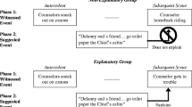 The memory reports consisted of ten items. For each participant, three of those items, chosen at random, were manipulated (misinformation items), whereas the other seven items were not manipulated (control items). Thus, the present study was based on a 2 (self-sourced vs. other-sourced, between participants) × 2 (misinformation vs. control, within participants) mixed design. The dependent variable of interest was how much participants’ reports of their memories would change between the baseline test and the final test in the direction of the misinformation.
