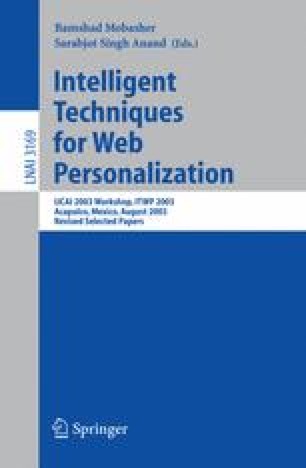 - 23.Mobasher, B., Nakagawa, M.: A Hybrid Web Personalization Model Based on Site Connectivity. In: Proceedings of the WebKDD Workshop at the ACM SIGKKDD International Conference on Knowledge Discovery and Data Mining, Washington, DC (August 2003)Google Scholar