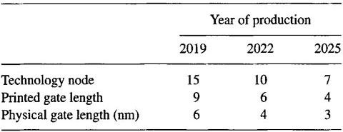 The progressive scaling of transistors in complementary metal-oxide-semiconductor (CMOS) technology to achieve faster devices and higher device density and to reduce the cost per function has fueled the phenomenal growth and success of the semiconductor industry—captured over the past 40 years by Moore’s famous law. The International Technology Roadmap for Semiconductors (ITRS) predicts, as illustrated in Table 7.1, that 7-nm physical-gate-length CMOS transistors will be in mass production in 2018. The Roadmap of the leading integrated circuit (IC) manufacturer, IBM, goes further (see Table 7.2), predicting that the physical length of the transistors will reach 3 nm by 2025. Indeed, transistors with a 45-nm channel length are in mass production now in the 90-nm technology node and functioning transistors with a 4-nm channel length have been demonstrated already by NEC at IEDM 2003. Although it is clear that the scaling of the CMOS transistors will continue in the next two decades, it is widely recognized that intrinsic parameter fluctuations introduced by the discreteness of charge and matter will be a major factor limiting the integration of such devices with molecular dimensions in giga-transistor count chips.