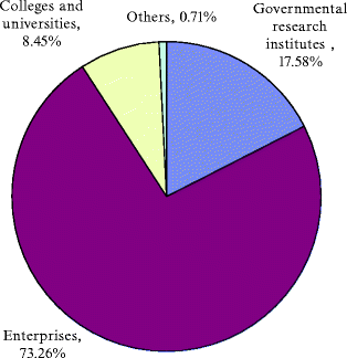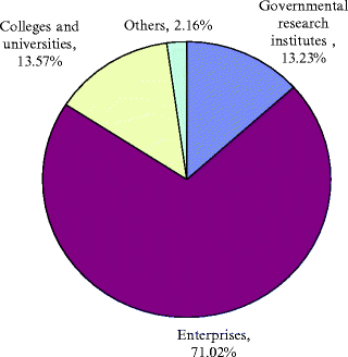 The percentages of innovative subjects in R&D expenditure. Note: The raw data are from the Science and Technology Yearbook in 2009