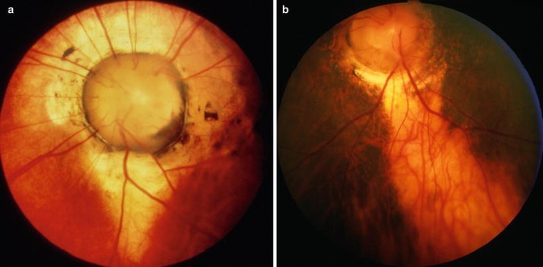 Congenital anomalies of the optic disc underlie many cases of decreased vision, strabismus, and nystagmus in childhood [54, 151]. A comprehensive evaluation necessitates an understanding of the ophthalmoscopic features, associated neuro-ophthalmologic findings, pathogenesis, and appropriate ancillary studies for each anomaly [46]. The subclassification of different forms of colobomatous defects on the basis of their ocular and systemic associations has further refined our ability to predict the likelihood of associated central nervous system (CNS) anomalies solely on the basis of the appearance of the optic disc [46]. The widespread availability of modern neuroimaging has refined the ability to identify subtle associated CNS anomalies and to prognosticate neurodevelopmental and endocrinological problems [46]. Genetic analysis has now advanced the understanding of some anomalies. It has been recognized [194, 218, 333] that many of these disorders are accompanied by some degree of peripheral retinal nonperfusion.