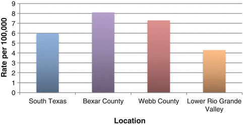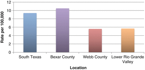 Suicide mortality rates in selected South Texas locations, 2005–2009. Source: Center for Health Statistics Data Management Team, Texas Department of State Health Services