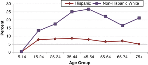 Suicide mortality rates in South Texas by age group and race/ethnicity, 2005–2009. Source: Center for Health Statistics Data Management Team, Texas Department of State Health Services
