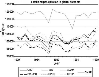 Rainfall estimates from major global data sets (Biemans et al. 2009)