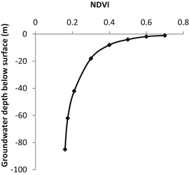The relationship between NDVI and depth-to-groundwater for the Hailiutu River catchment in northern China (Redrawn from Lv et al. 2012)