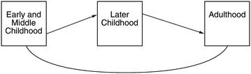 Returning to Fig. 1, the first set of studies I feature use data from the NLSY79 Child and Young Adult surveys to look at health during childhood and adolescence. For example, Atkins and Matsuba (2008) use maternal ratings of childhood personality for over 1000 5- and 6-year-olds to derive resiliency, undercontrol and overcontrol prototypical profile scores. They then extend their analyses to later in childhood and examine whether childhood personality is associated with the likelihood and the timing of an unintentional injury requiring hospitalization or medical attention before the child turned age 13. Their findings suggest an inverse association between the likelihood of childhood unintentional injury and the overcontrolled prototype score. A recent paper by Cheadle and Goosby (2010) focuses on the complex interplay between childhood health and educational development over the early life course by estimating the relationship between birth weight, cognitive development, and timely high school completion. Their models therefore spanned childhood, adolescence, and early adulthood. Especially notable about this paper is the fact that they were able to adjust for fixed-family characteristics and aspects of the home environment by making use of information from siblings. Among several findings from this study, the authors noted that lower birth weight was associated with decreased cognitive skills at age 5 and marginally significantly slower growth rates into adolescence. They also showed that low birth weight increased the risk of not graduating by age 19. The authors concluded that their pattern of findings painted a multifaceted picture of disadvantage that begins in the womb and extends over the life course.