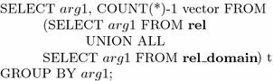 Query for creating a count vector for rel.arg1