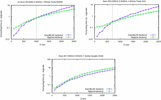 At last, a possible development concerns the identification of a suitable BLAS/LAPACK back-end for OpenCL in order to target a wider range of accelerators like AMD and Intel GPUs.
