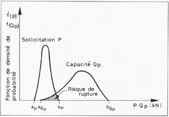 Second case: We assume that the stress (S) and the capacity (Q) are random with a normal distribution, the load to be transmitted to the ground is characterized by the following values.