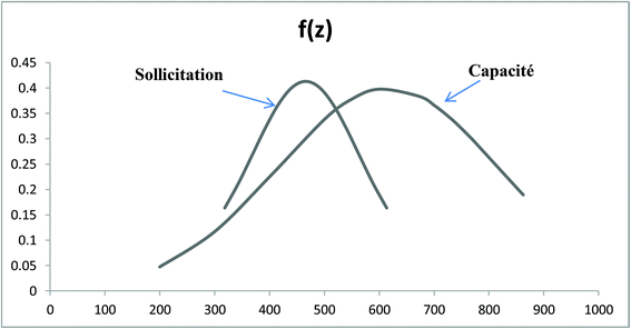 It is considered that the solicitation (S) and the capacity (Q) are random and follow a normal probability law and thus the safety margin (Z = Q–S) also follows a normal distribution.