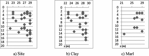 Data analysis will focus on the results of laboratory and in situ tests for model one layer (Site) and model two layers (clay and marl). The results compare values of the min, max, average, standard deviation and coefficient of variance (CV) for the 2 models.