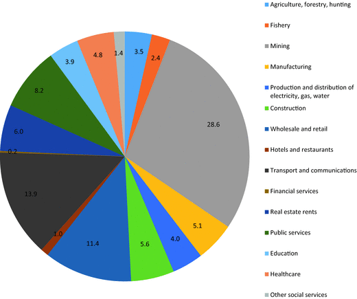 Industrial composition of the economy of the Russian Far East, 2014 (in per cent) (Source: Federal’naia sluzhba gosudarstvennoi statistiki 2016)