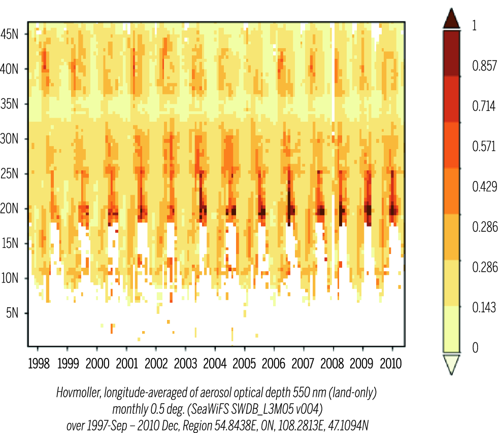 Longitude-averaged aerosol optical depth between 54.8 and 108 E