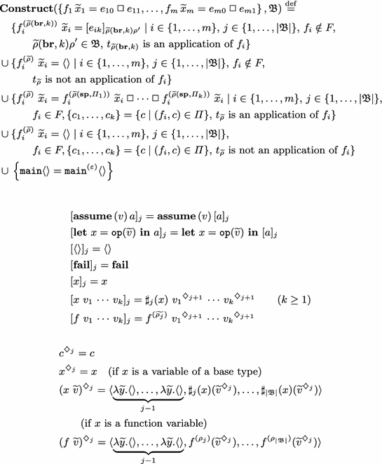- 15.Ong, C.H.L., Ramsay, S.J.: Verifying higher-order functional programs with pattern-matching algebraic data types. In: Proceedings of the 38th annual ACM SIGPLAN-SIGACT Symposium on Principles of Programming Languages (POPL 2011), pp. 587–598 (2011)Google Scholar