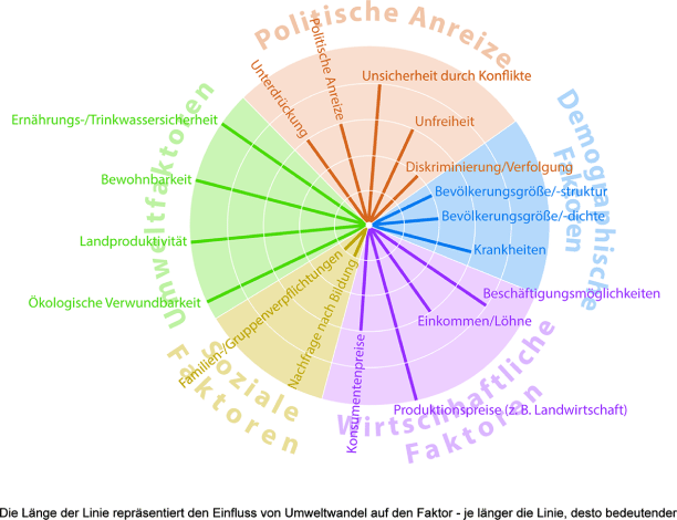 Der Einfluss von Umweltfaktoren auf Triebfedern für Migration. (Nach Foresight 2011, S. 54)
