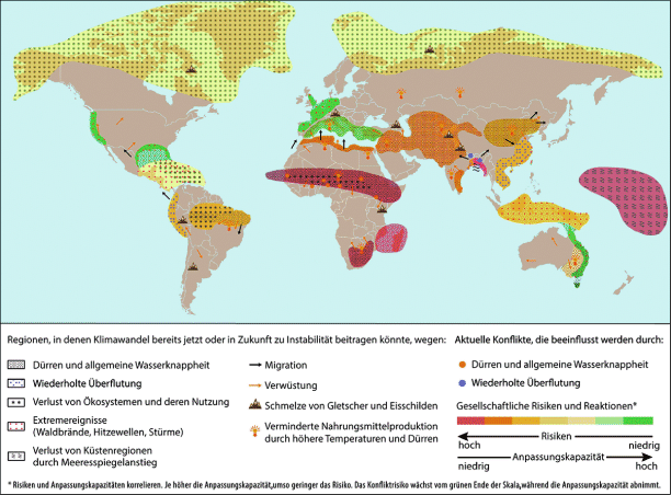 Hotspots des Klimawandels und politische Instabilität. (Scheffran und Battaglini 2011)