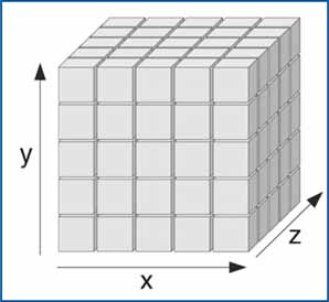dove dFOV è l’ampiezza del FOV. In altri termini, il voxel è l’elemento costitutivo dell’immagine fisica, che è la rappresentazione spaziale delle densità degli elementi della matrice in cui viene riprodotta ciascuna sezione TC con spessore di strato definito (Fig. 5.1).
