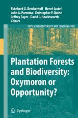 - Carnus JM, Parrotta J, Brockerhoff E, Arbez M, Jactel H, Kremer A, Lamb D, O’Hara K, Walters B (2006) Planted forests and biodiversity. J For 104:65–77Google Scholar