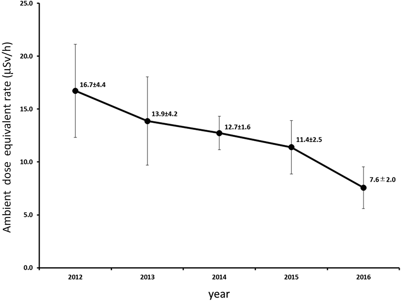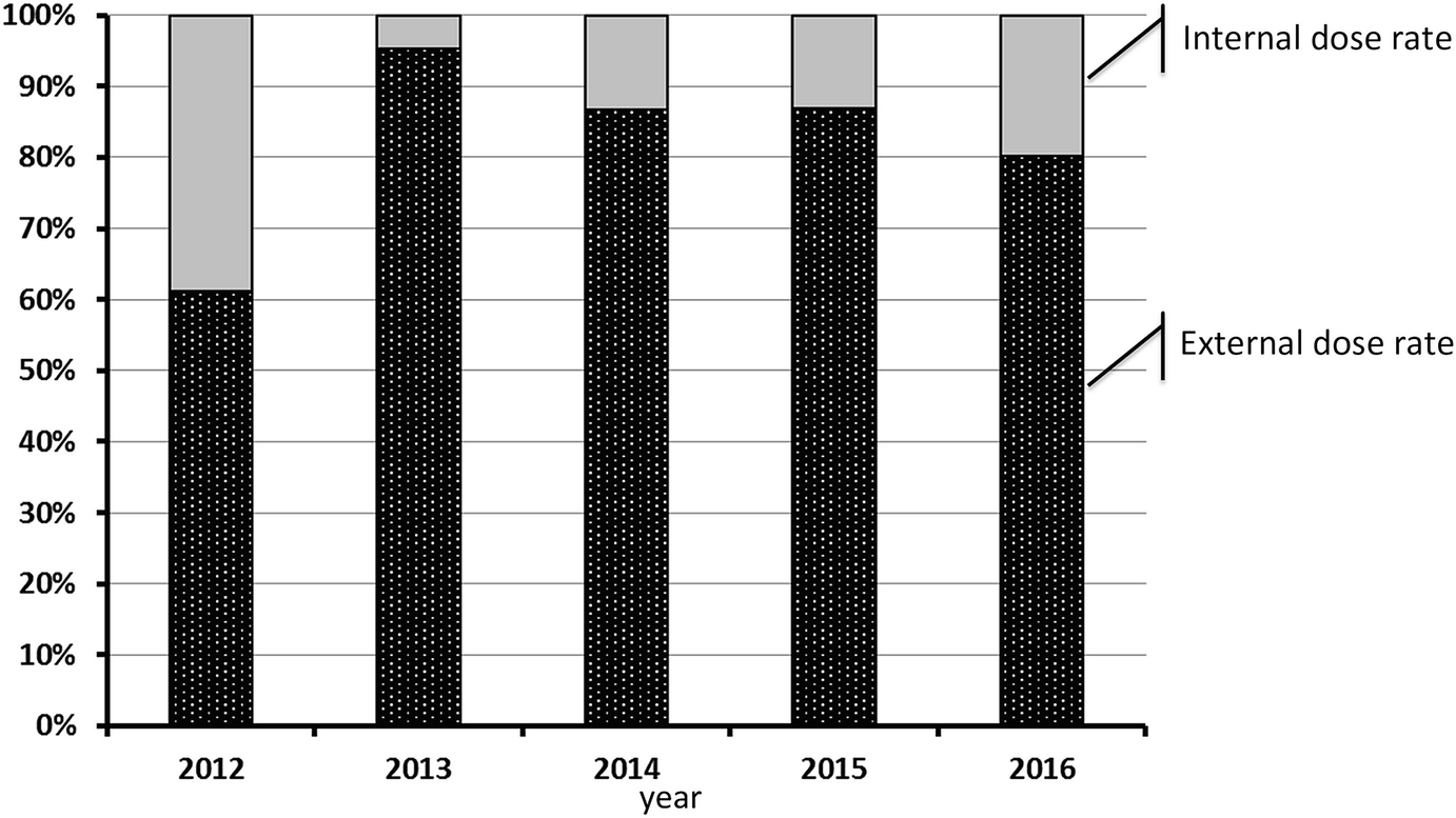 Total dose rate was represented as the sum of the average of external dose rate and the average of internal dose rate in each year.