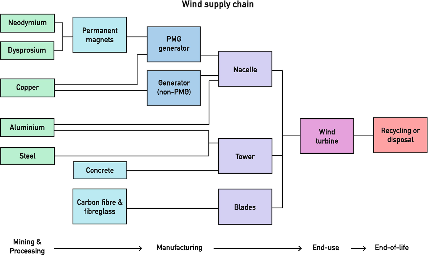 Overview of key metal requirements and supply chain for wind power