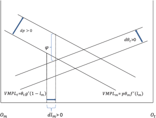 Case (a): \( {y}_i^t>{y}_i^{t-k} \) and \( {\theta}_i^t<{\theta}_i^{t-k}. \) This is commonly seen for i = agriculture among developing countries.