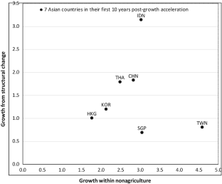 The decomposition of structural change into agriculture and nonagriculture was not shown in Fig. 9.4.