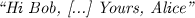 Johnny replies with a signed message, thereby quoting the original text: