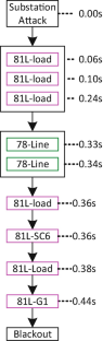 The terms substations and buses are interchangeable and are used throughout the chapter. The “bus” has been used in literature. Both terms indicate a node of power transmission networks. The hypothesized nodal removal is introduced due to the possibilities of remote access to those substations, implied to the possibilities of “intruders” through electronic means. By electrically disconnecting the compromised substation(s) through switching attack, it may introduce grid congestion, leading to various sorts of instability issues from the subsequent events.