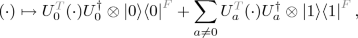 with which U is in tensor product. The gray superscripts are purely informational, and do not signify any mathematical operation. If we want to denote, for example, a partial trace of the state