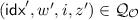 (B-2) There exist two distinct queries \((\mathsf{idx}, w, i, z)\),