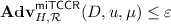 We say \(\mathsf {RO} \) is \((p, q, u, \mu , \rho , \varepsilon )\)-\(\text {miTCCR}\), if for all distinguishers \(D \) making at most p queries to \(\mathsf {RO} \) and at most q queries (in total) to its other oracles, and all distributions