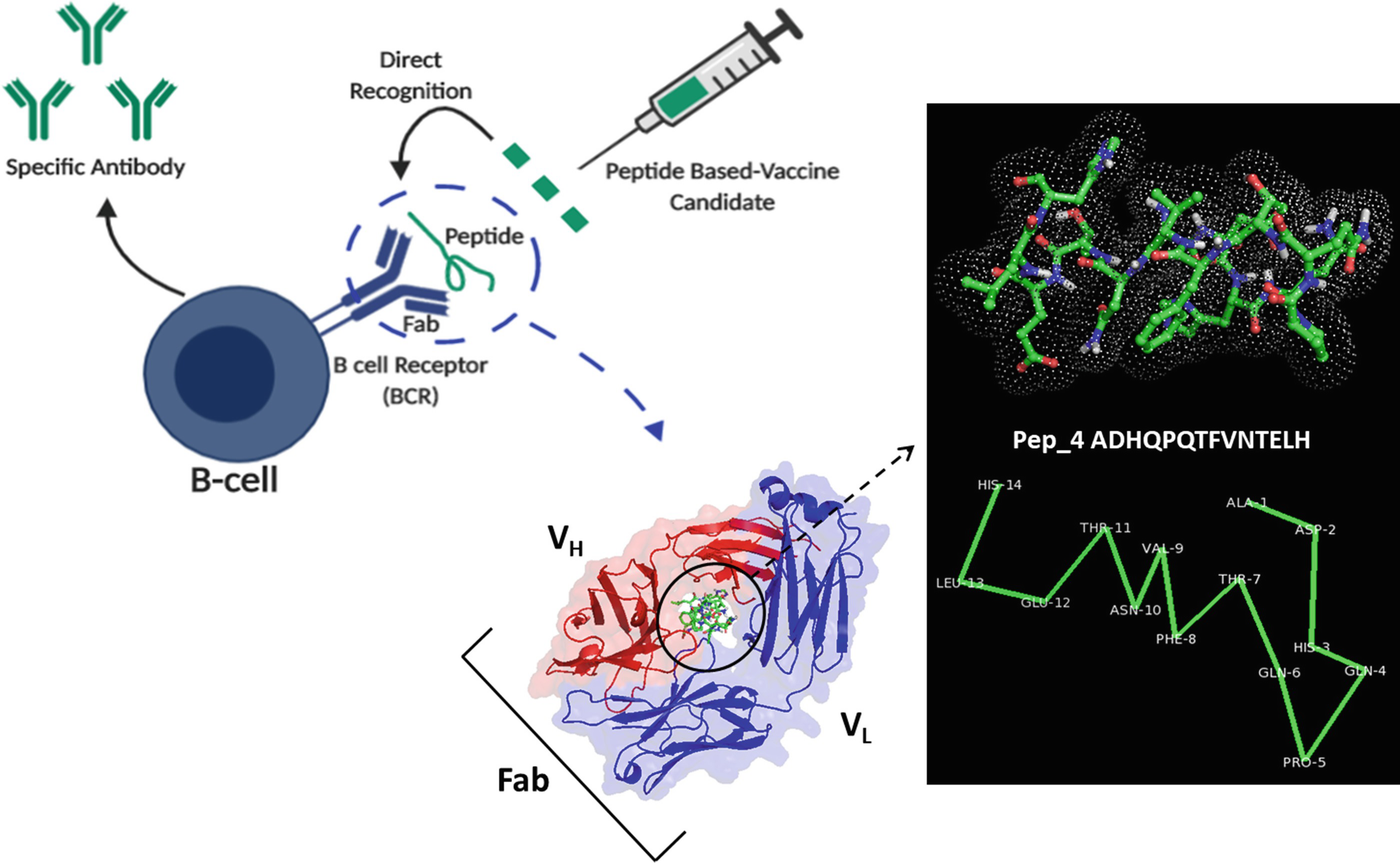 Previously, we characterized the spike glycoprotein of SARS-CoV-2 to obtain epitope-based peptide vaccine against SARS-CoV-2. In that study, SARS-CoV-2 isolates were retrieved from the GISAID EpiCoV and NCBI and then aligned to obtain the conserved region of SARS-CoV-2 spike glycoprotein. We identified Pep_4 ADHQPQTFVNTELH as potential B-cell epitope vaccine candidates to overcome the SARS-CoV-2 outbreak. Pep_4 vaccine candidates are predicted to trigger B-cell immune response through direct binding to the BCR/FAB molecule (Kharisma and Ansori 2020).