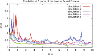 We thank Etienne Tanre of INRIA for making these simulations of paths of the inverse Bessel process.