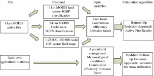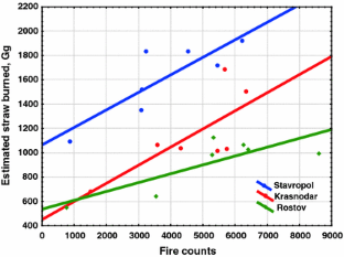 High sensitivity of the Arctic region to short-lived climate forcers, including black carbon (BC), makes crop residue burning an important source of emissions. A high to moderate uncertainty in cropland burning emission estimates from remote sensing-based analyses currently exists and is problematic for establishing baseline estimates of black carbon emissions from global remote sensing products. Straw burning and possible BC emissions were estimated at the oblast level for Russia for years 2003 through 2010. A study was based on 1 km Moderate Resolution Spectroradiometer (MODIS) Active Fire Product, oblast level agricultural statistics, 1:25,000–1:50,000 scale GIS vector field maps and developing algorithms for calculating the size and intensity of fires as well as testing the accuracy of the predictions in areas with contrast land use. Both Active Fire Product and statistics methods demonstrated consistent results, including increasing fire activity in the years with additional straw surplus and the highest absolute values for vast territories with quite intensive grain production, mainly in European Russia. Straw burning can be a source of at least 1/3 total BC emissions from agriculture and grassland fires and does not appear to be the main source of total BC emissions for the Russian Federation. For regions with small number of cropland fires, the accuracy of existing remote sensing-based land cover products is insufficient for reliable classification of agricultural fires from satellite products. Incorrect classification of agricultural fires may exceed 25 %, increasing for the northern part of the country where forests are the predominant land cover. An improved method would be to calculate BC emissions from burned area using high resolution field masks and ground validation of fire sources in cropland areas.