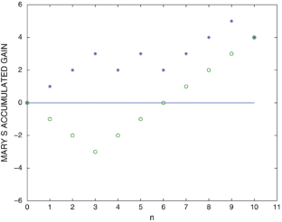 In general, a process \(\{X_{n}\}_{n\geq 0}\) is a random walk if \(X_{n+1} = X_{n} + Z_{n}\), where Z n is independent of X n ,…, X 0.